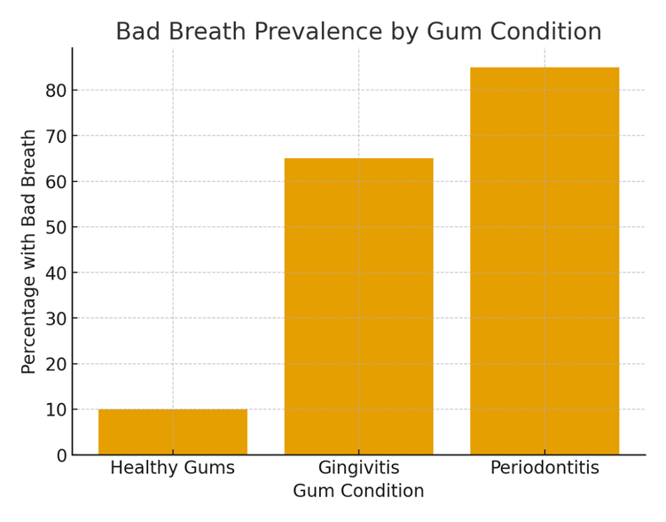 - Up to 65% of individuals with gingivitis experience chronic bad breath